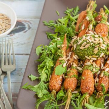 Roasted Baby Carrots with Carrot Top Pesto {vegan & dairy-free}