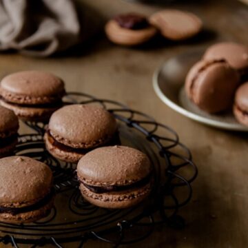 Chocolate Macarons with dark chocolate ganache